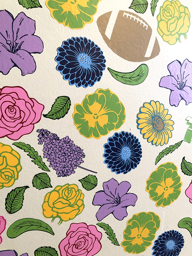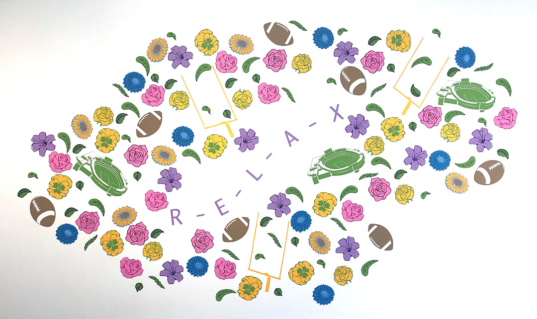 R-E-L-A-X. Famous quotes by Aaron Rodgers. Wall vinyl. 101”w x 56”h. 2020.